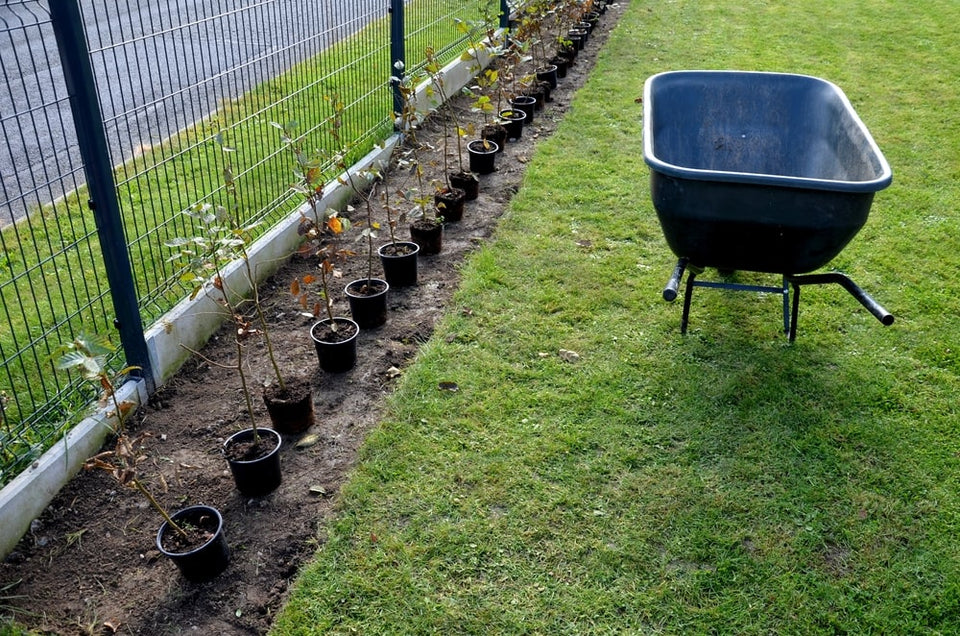 - Heben Sie Pflanzgraben oder Pflanzlöcher aus. Dabei sollte ein Pflanzloch für eine Pflanze doppelt so groß sein, wie die ausgebreiteten Wurzeln.