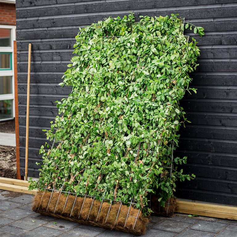 Die hohen Fertighecken werden in einem Container mit einem festen Tuch gezogen. Es ist anzuraten, die Pflanzen vor dem Anpflanzen aus dem Container zu holen, so dass die Wurzeln gut wachsen können. Das Gewicht der einzelnen Heckenelemente liegt zwischen 50 - 90 kg, abhängig von den Wetterumständen. Da die Pflanzen draußen gezüchtet werden, hat bei Regen die Erde mehr Wasser und ist darum schwerer. Mehr Informationen über das Pflanzen einer Fertighecke können Sie den Pflanzanleitungen entnehmen.