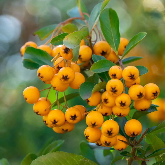 Der Feuerdorn (lateinisch Pyracantha) ist eine Heckenpflanze, die sich vor allem durch die hübschen Blumen und farbenfrohen Beeren auszeichnet. Der Feuerdorn ist eine exzellente Heckenpflanze, da er nicht nur dicht und breit wächst, sondern auch bis zu 1,5 Meter hoch wird und pflegeleicht ist. Außerdem sind die hübschen roten, gelben oder orangen Beeren ein bunter Hingucker. Man kann den Feuerdorn auch als Kletterpflanze einsetzen, dann erreicht er eine Höhe von bis zu 4 Metern. Der Feuerdorn ist außerdem immergrün und blatthaltend und zieht durch seine Beeren und Blumen Vögel und Insekten an. Die Dornen an der Pflanze sorgen außerdem dafür, dass unerwünschte Gäste dem Garten fern bleiben.