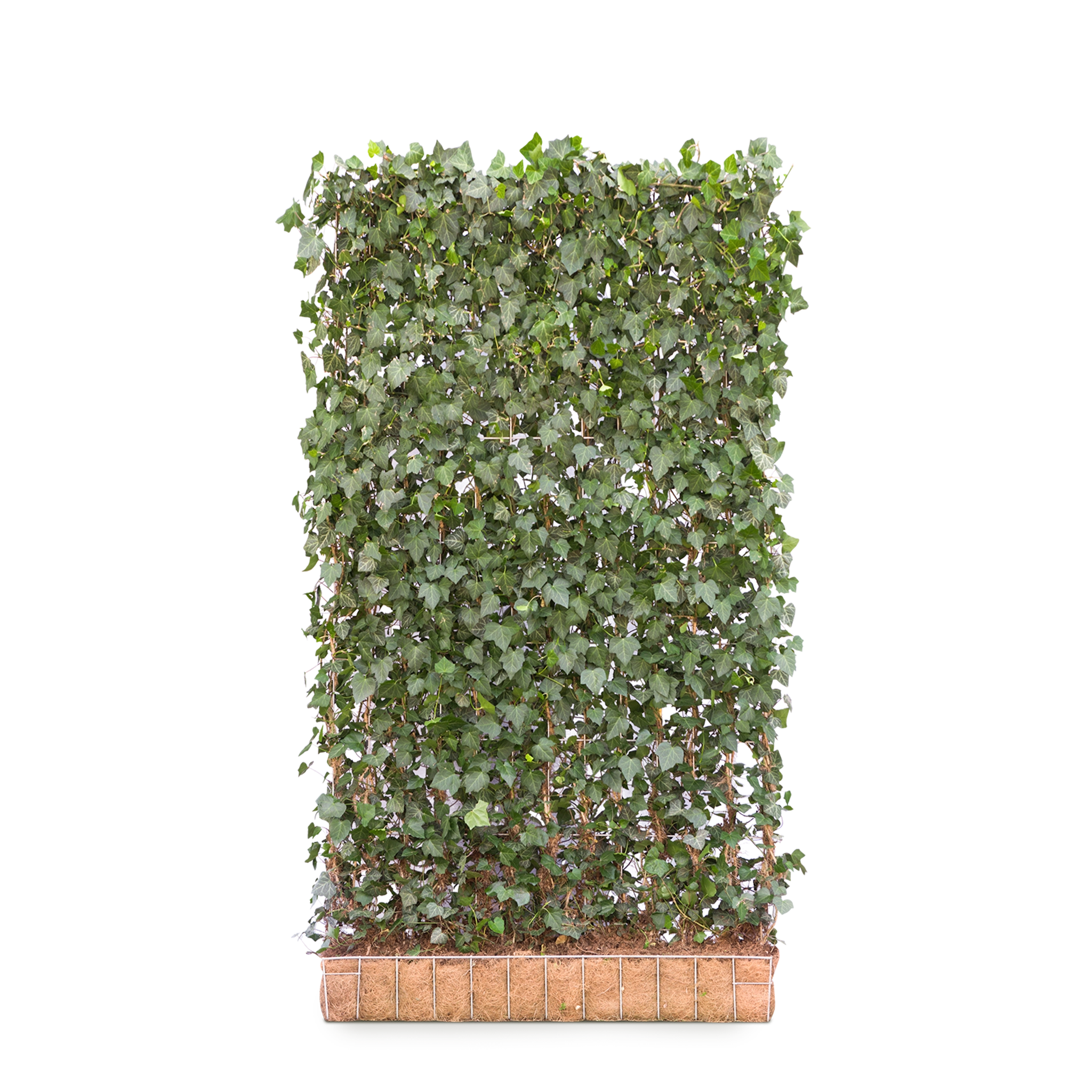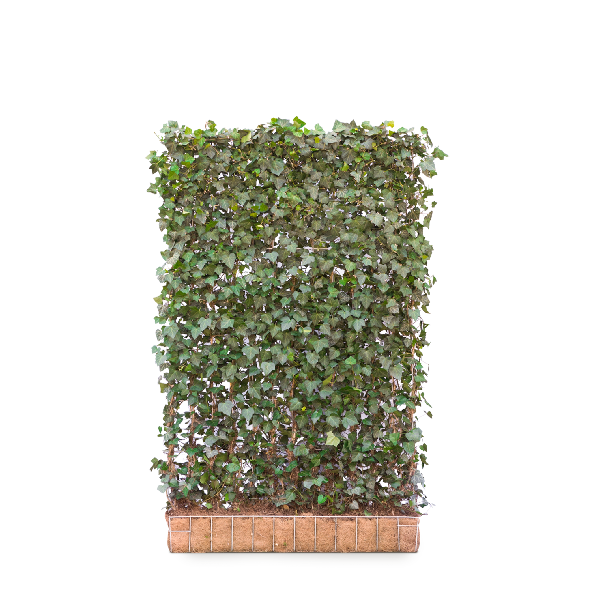 Der großblättrige Efeu ist eine immergrüne Kletterpflanze und verliert so praktisch nie seine Blätter. Eine einmal dicht gewachsene Efeuhecke bleibt das ganze Jahr über dicht und grün. Das ist vor allem sehr praktisch, wenn die Efeuhecke als Sicht- oder Windschutz eingesetzt wird. Ein weiterer Vorteil des Hedera Hibernica ist, dass er schmal wächst. Er ist so, da er wenig Platz in der Breite einnimmt, sehr gut für kleine oder schmale Gärten oder Hinterhöfe geeignet. Wird der Efeu nicht gestutzt, erscheinen im Herbst gelb-grüne Blüten und danach schwarze Beeren. Diese sind giftig für Menschen, aber bei Vögeln sehr beliebt.