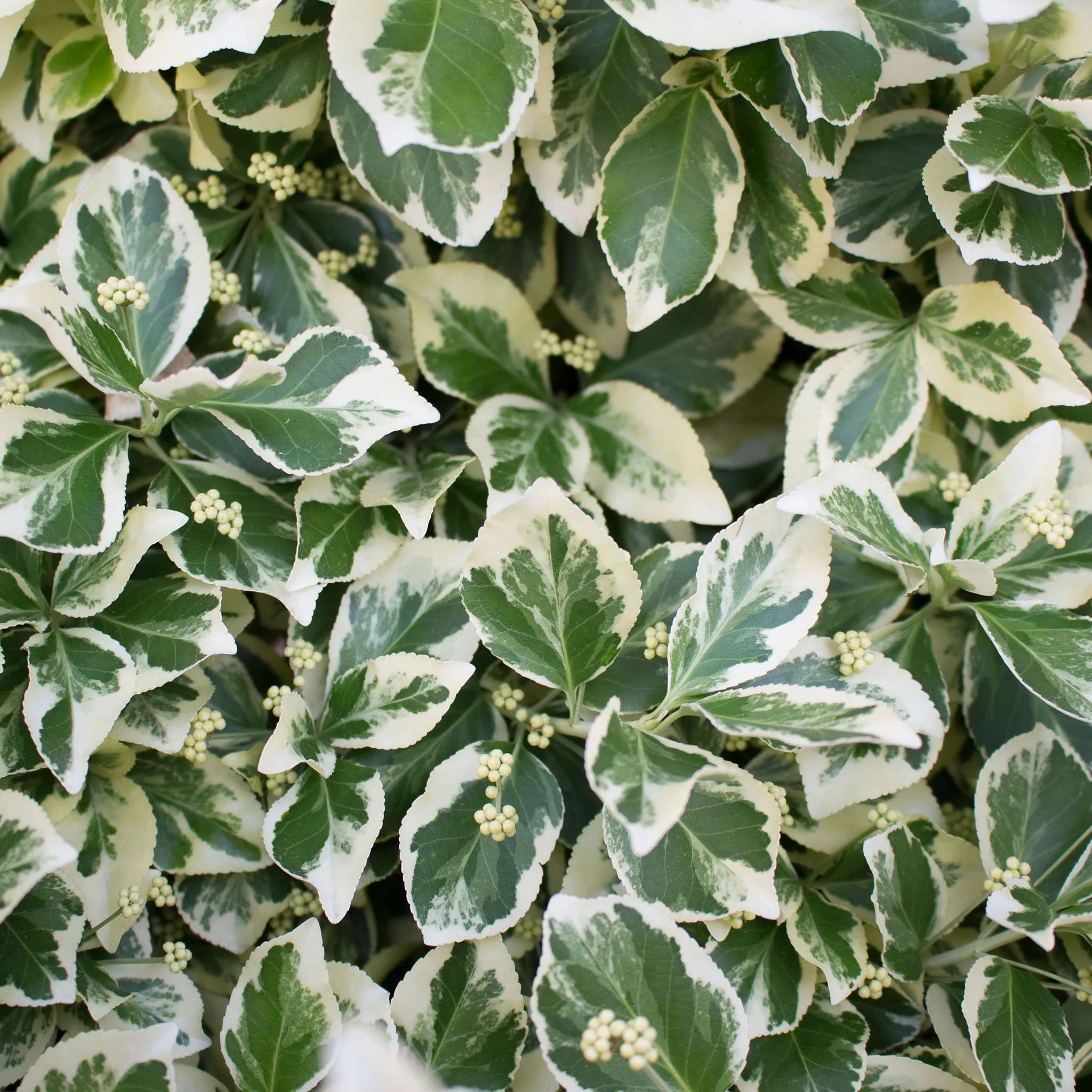 Diese immergrüne Pflanzen haben wunderschöne dunkelgrüne Blätter mit einem weißgrauen Rand. Immergrün bedeutet, dass der Euonymus fortunei 'Emerald ’n Gaiety' auch während der kalten Monaten des Jahres seine Blätter behält. Es ist schön, einige immergrüne Sträucher im Garten zu haben. Neben dieser weißgrauen Sorte verkaufen wir bei Garmundo auch die Sorte Japanisches Kriechspindel Emerald ’n Gold mit goldgrünen Blättern. Beide zusammen sind sehr schön als Kombination in Ihrem Garten! Die Blätter des Japanischen Kriechspindel färben sich im Winter etwas ins Rötliche, um im Frühjahr wieder die ursprüngliche grünweiße Farbe anzunehmen. Dann erscheinen auch kleine unauffällige Blüten am Zierstrauch, gefolgt von kleinen Beeren. In unserem Sortiment finden Sie ebenfalls das Europäische Kriechspindel, eine laubabwerfende Sorte, die im Herbst hübsch verfärbt und eine Wachstumshöhe von ca. 4 Meter erreichen kann.