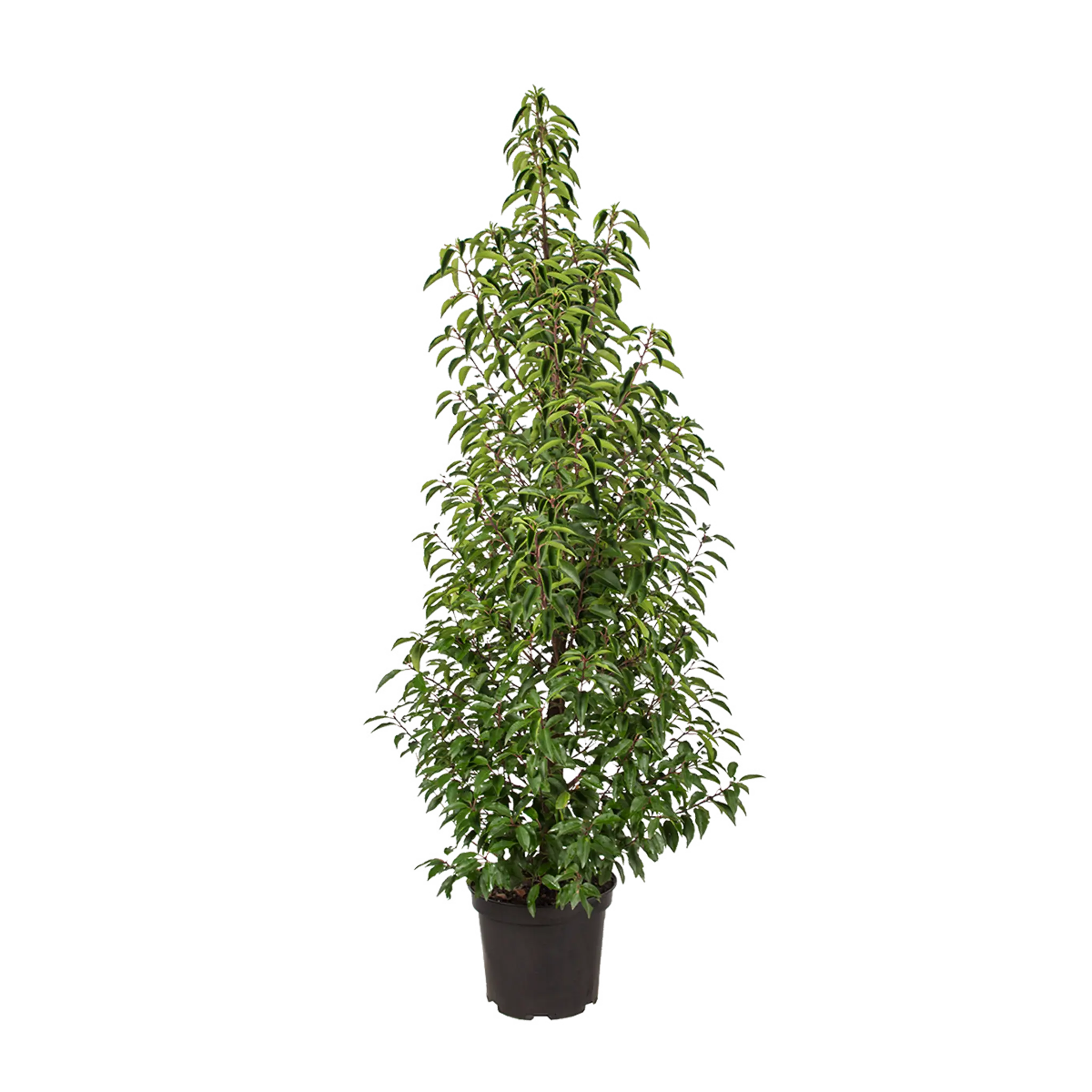 Die Heckenpflanze hat eine sehr schöne Ausstrahlung und ist für viele Gärten geeignet. Im Frühling sind die Blätter hellgrün und im Herbst werden sie dunkelgrün. Der Prunus Angustifolia eignet sich sehr gut dazu, niedrige bis mittelhohe Hecken anzubauen. Durch das dichte Blätterwerk ist er gut als Sichtschutz geeignet. Neue Blätter des Kirschlorbeers haben dunkelrote Zweige und im Juni kommen kleine weiße Blüten zum Vorschein, die Bienen und Schmetterlinge anlocken. Nach der Blütezeit formt der Prunus Angustifolia schwarz-rote Beeren, die bei Vögeln sehr beliebt sind.
