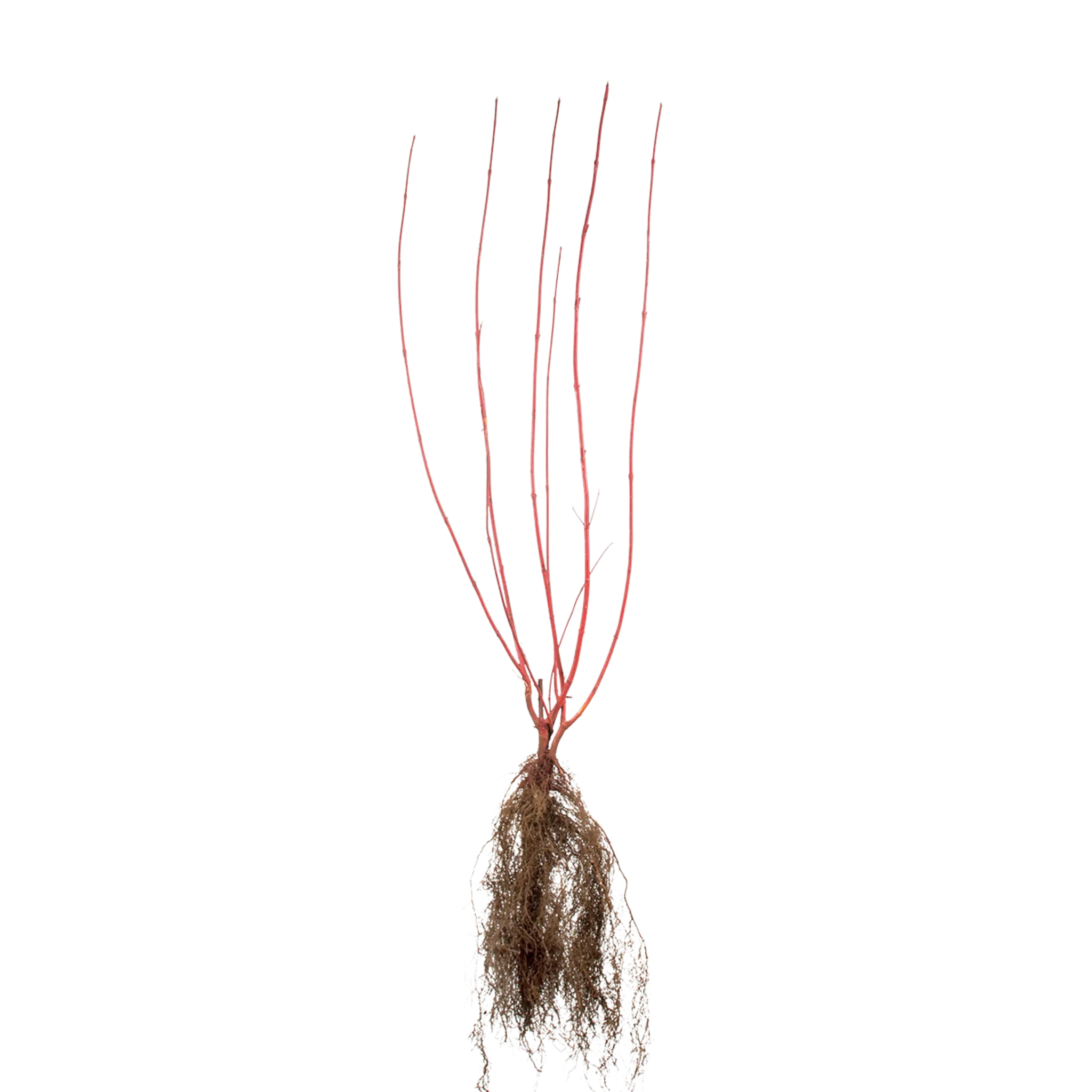 Rotholz-Hartriegel-Pflanzen mit roten Zweigen für eine Hecke