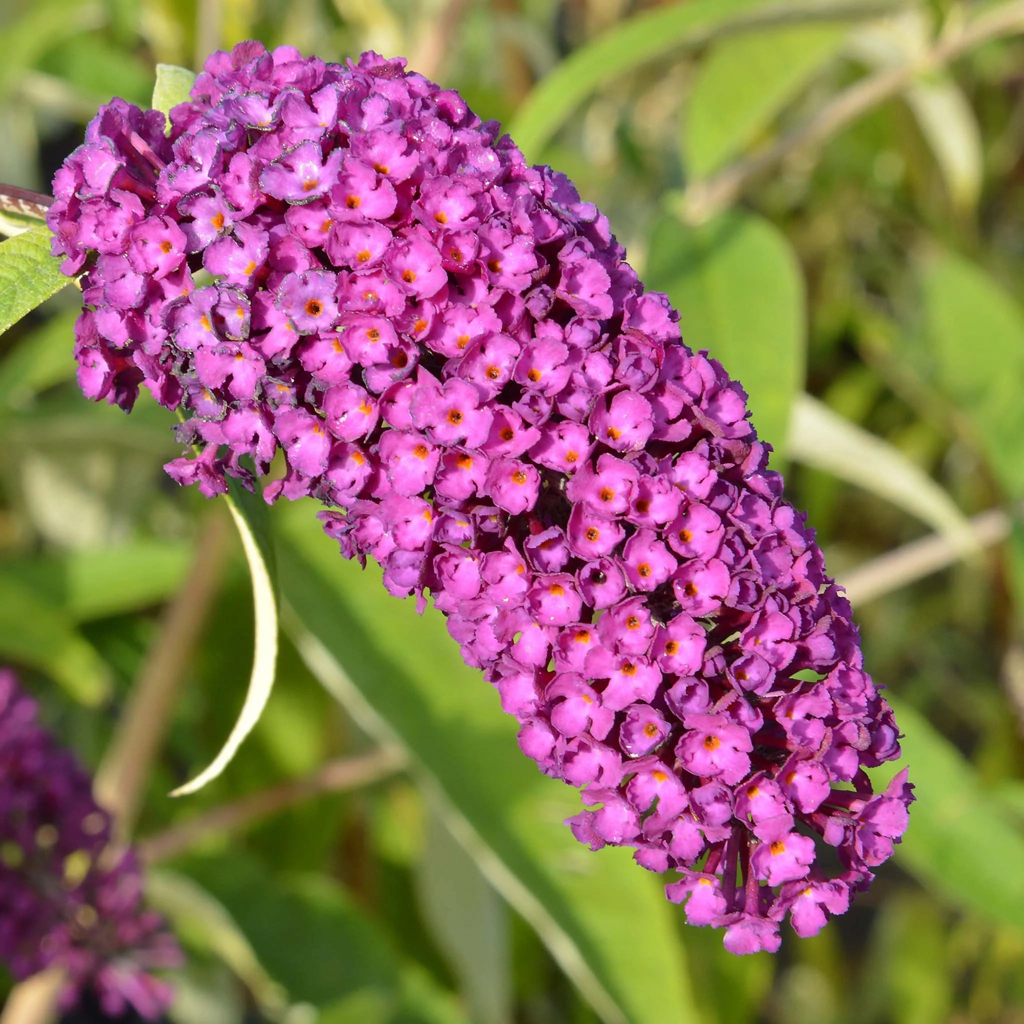 - Wunderschöne violett-rote Blütenrispen im Sommer: zieht Schmetterlinge an