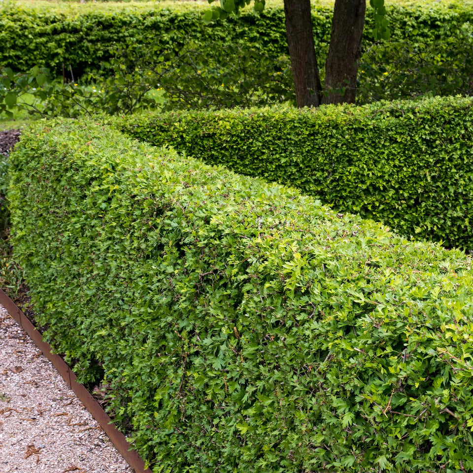Der eingriffelige Weißdorn hat ungewöhnlich schön geformte grüne Blätter. Und im Mai erscheinen zwischen dem Grün kleine, weiße Blüten mit anschließenden roten Beeren. Wussten Sie, dass die Blüten und Früchte zum Verzehr geeignet sind und dass man aus den Blättern der Pflanze Tee aufgießen kann? Man spricht dem Crataegus sogar eine medizinische Wirkung zu. Aus den Blüten, Blättern und Beeren werden Medikamente zur Behandlung von Herz- und Gefäßkrankheiten gewonnen. Vögeln bietet der eingriffelige Weißdorn einen perfekten Unterschlupf, um ihr Nest zu bauen und um dort von den Beeren zu naschen. Auch Schmetterlinge und andere Insekten werden durch die Weißdornhecke angelockt. Es handelt sich hierbei offenkundig um eine sehr besondere Heckenpflanze, die mit ihren Eigenschaften zur Diversität der Landschaft beiträgt!