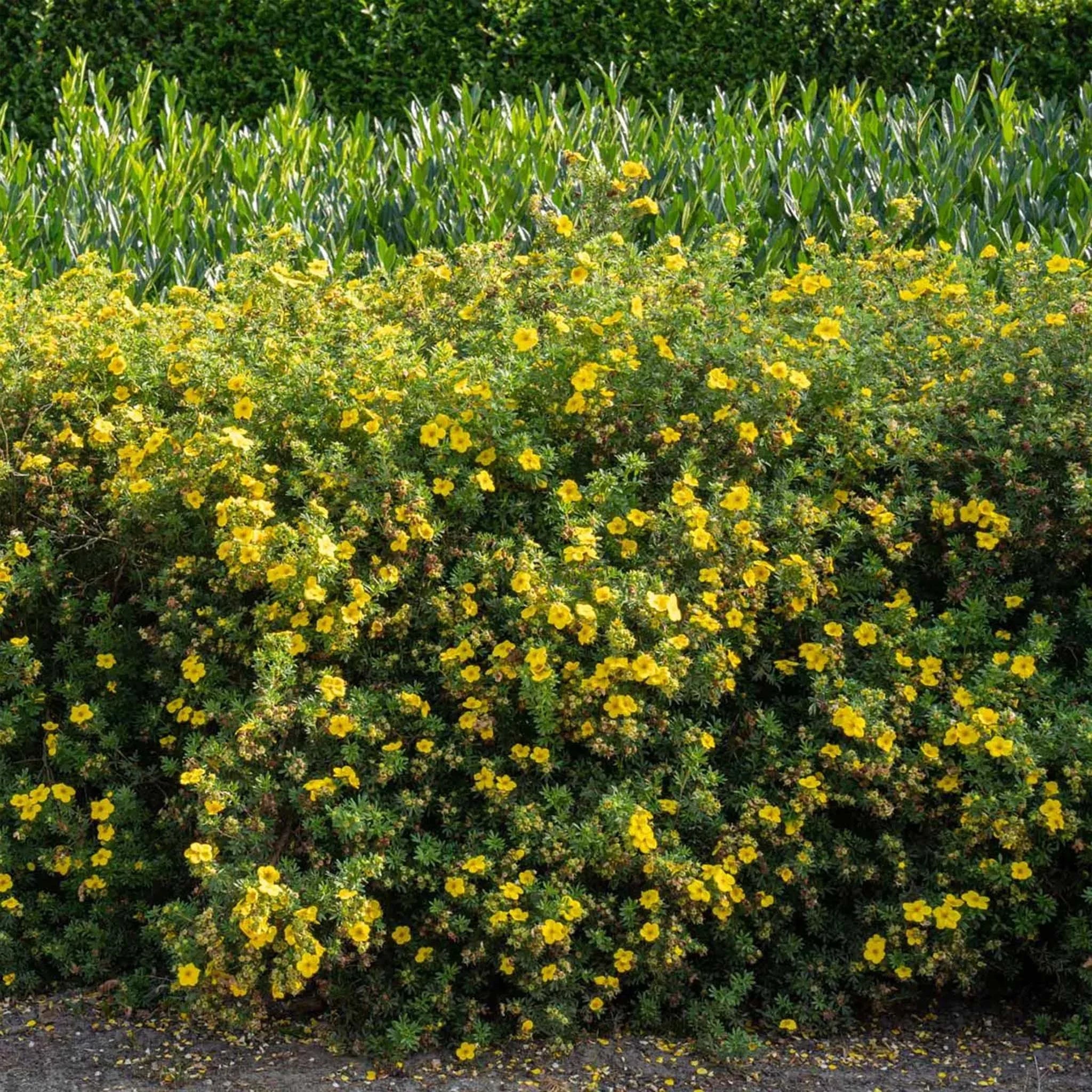 Diese blühenden Gartenpflanzen wachsen jährlich nur 10 cm und erreichen eine Höhe von ca. 1 Meter. Das Schneiden ist nur dann nötig, wenn Sie die Potentilla-Hecke in einer bestimmten Form halten möchten und das können Sie zu jederzeit im Jahr machen. Also total pflegeleicht! Die Potentilla fruticosa 'Goldfinger' eignet sich aber nur für eine niedrige Hecke. Oder möchten Sie lieber eine höhere, blühende Hecke? Dafür können Sie z.B. den Feuerdorn oder den Schmetterlingsflieder wählen.