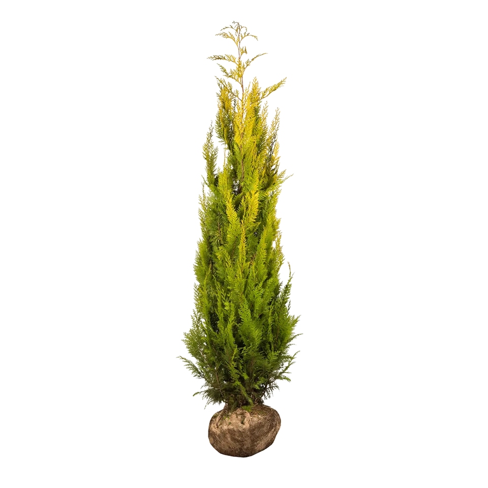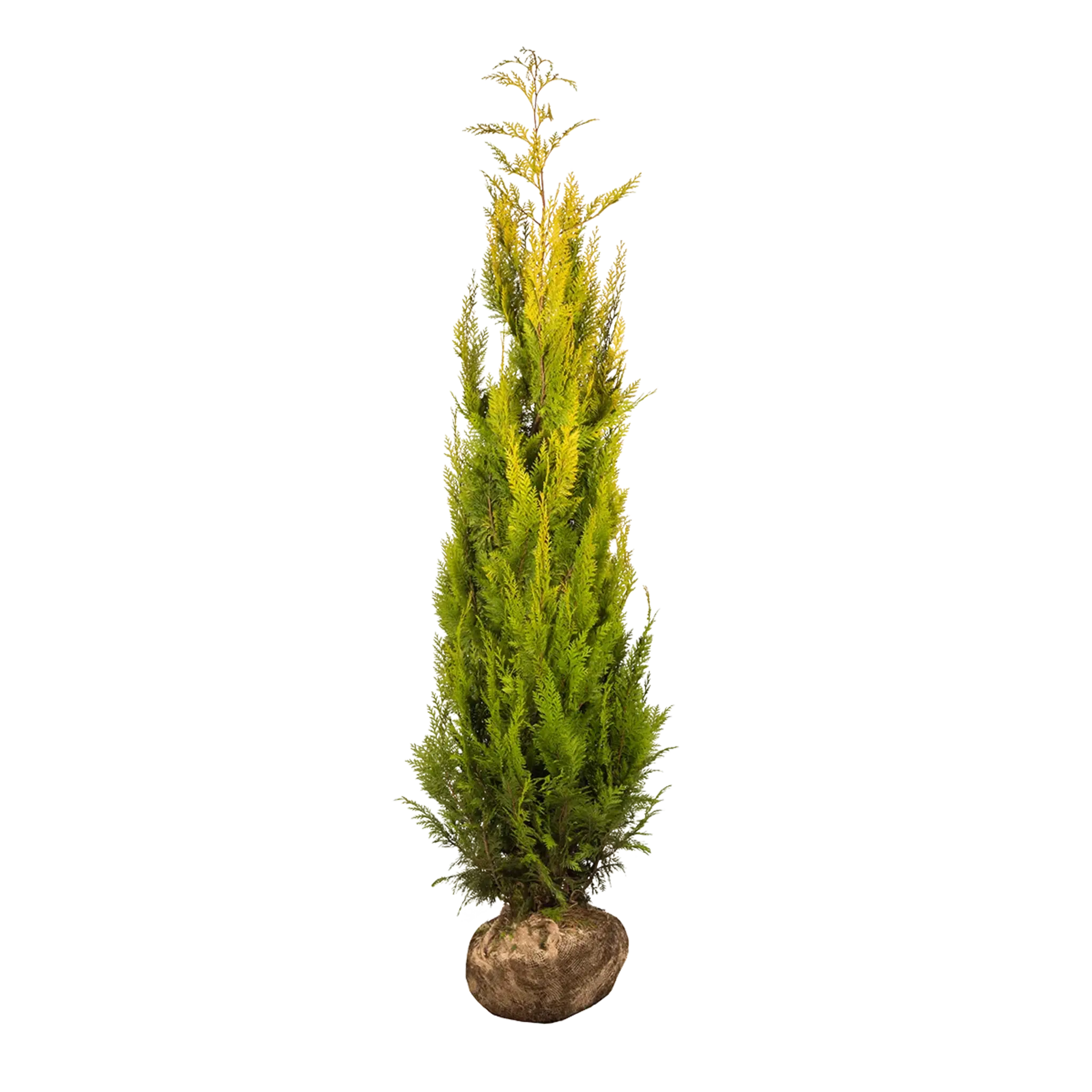 Die Gelbe Scheinzypresse Ivonne (Lateinisch: Chamaecyparis lawsoniana 'Ivonne') ist eine Scheinzypresse deren gelb geschuppte Nadeln stark auffallen. Falls Ihre Entscheidung auf die gelbe Heckenkonifere fällt, bekommen Sie eine immergrüne Hecke, bzw. eigentlich eine Hecke, die immer gelb ist. Sie haben nie wieder kahle Äste, durch die Ihre Nachbarn hindurchschauen können und wenn die ersten Sonnenstrahlen im Frühling scheinen, sitzen Sie windgeschützt hinter der gelben Konifere. Hätten Sie gerne eine andere Farbvariante in Ihrem Garten? Wählen Sie zwischen der gelben Scheinzypresse Stardust, deren Schuppen im Herbst bronze-grün werden und der blauen Scheinzypresse.