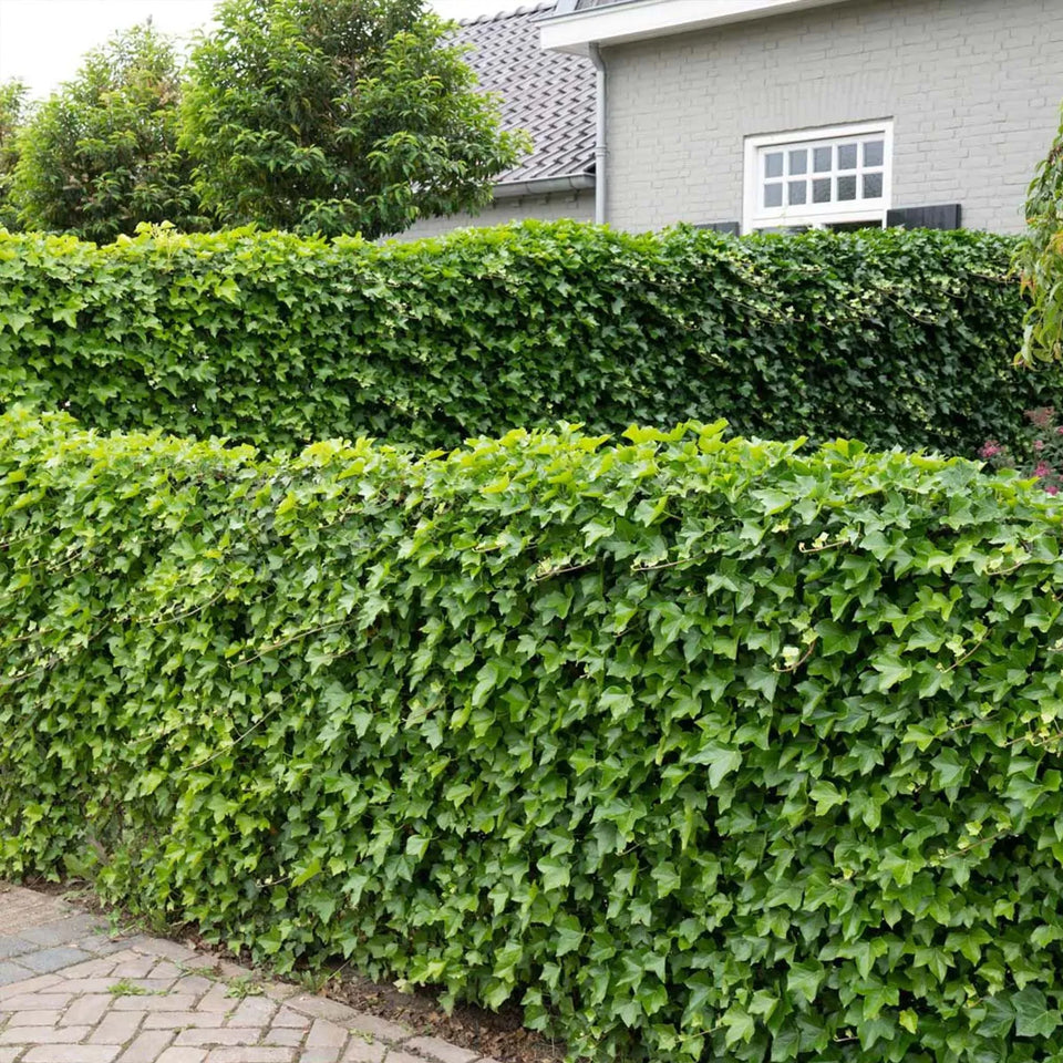 Abhängig von Standort und Witterung, kann der Gemeine Efeu 40-70 cm im Jahr wachsen. Aufgrund des schnellen Wuchses hat man so im Handumdrehen eine schönen, grüne, kompakte Hecke. Wer den Gemeinen Efeu, nicht als Zaun einsetzen will, kann ihn auch verwenden um eine Wand, Mauer oder ein Gebäude zu beklettern. Er kann bis zu 10 Meter in die Höhe wachsen und dient außerdem als Isolation. So findet man in einer hohen, mit Efeu bewachsenen Mauer oft wärmeliebende Insekten und brütende Vögel. Der Efeu dient, einmal dicht und hoch gewachsen, auch als Schutz der Struktur selbst: er schützt sie vor Wettereinflüssen. Allerdings sollte man es sich gut überlegen, wenn man einen Hedera Helix kaufen will, um eine Wand zu begrünen: die Fassade sollte im guten Zustand sein, anders können die kleinen Kletterwurzeln des Efeus diese beschädigen. Auch sollte man sich bewusst sein, dass es nicht so einfach ist den Efeu wieder zu entfernen, da kleine Wurzeln an der Fassade zurückbleiben.
