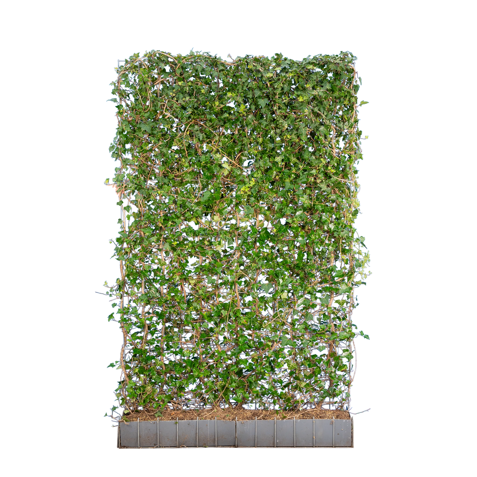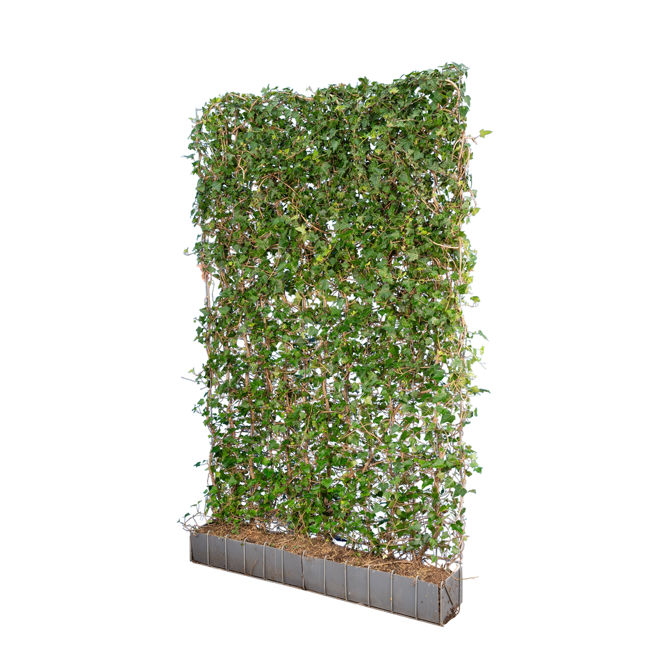 Der Gemeine Efeu, oder Gewöhnliche Efeu (Lat. Hedera helix) ist eine sehr populäre Kletterpflanze, die beliebt ist, um hohe schmale Hecken zu erstellen. Der gewöhnliche Efeu wächst etwas langsamer als der Großblättrige Efeu und hat darum einen geringeren Pflegeaufwand. Es ist so genug den Hedera Helix zweimal jährlich zurückzuschneiden. Da alle Hedera helix von Natur aus Kletterpflanzen sind, müssen Sie, um als Hecke verwendet zu werden, eine Struktur haben, an oder auf der sie klettern können. Auf Garmundo können Sie eine fertige Efeuhecke einfach bestellen. Der Gemeine Efeu ist außerdem immergrün, winterhart und ist nicht anfällig für Pilz- oder Pflanzenkrankheiten.
