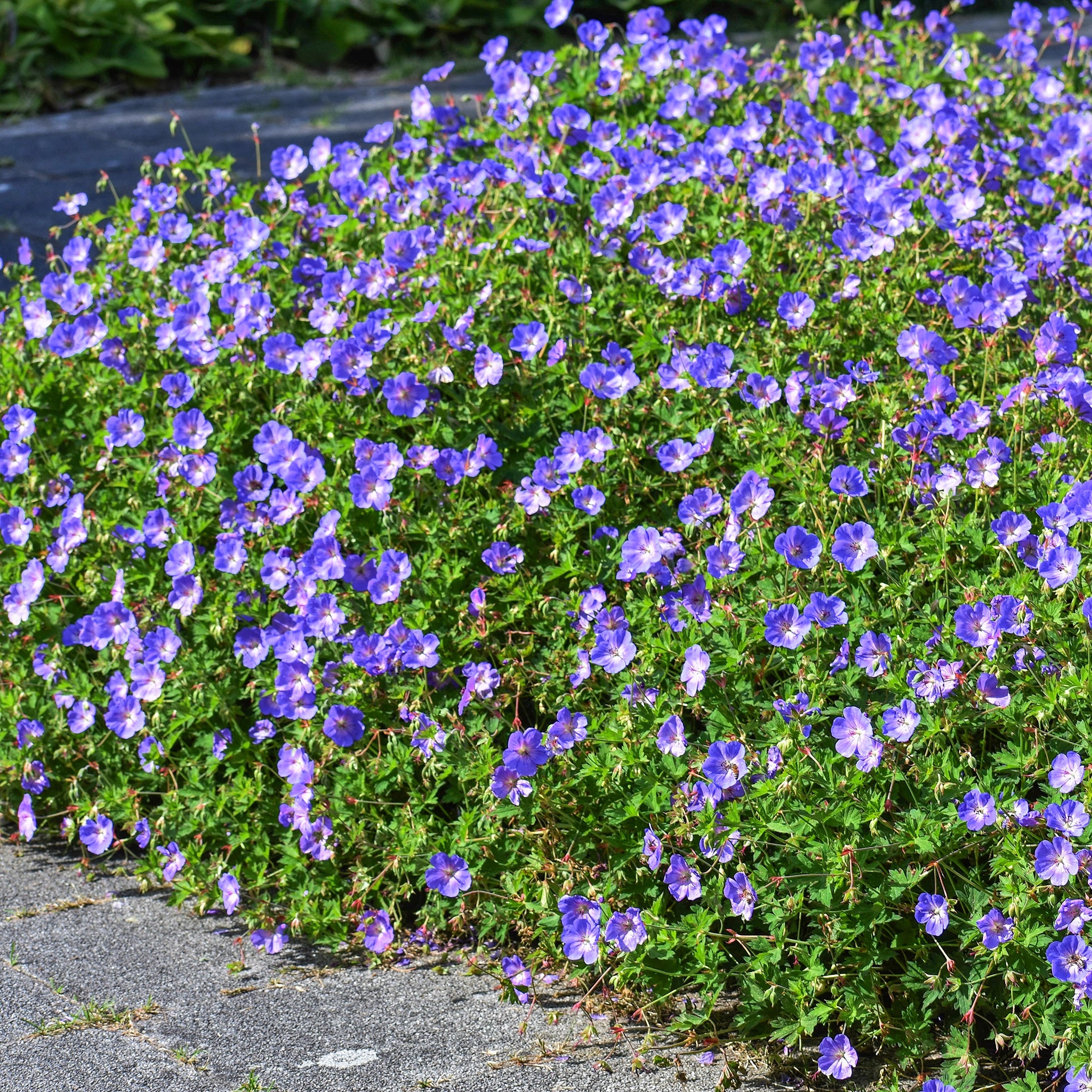 Mit der Geranie 'Rozanne' holen Sie sich eine echte Schönheit in den Garten. Mit ihren auffälligen blauen Blüten, die die ganze Saison über blühen, beeindruckt diese Blumenkönigin jeden Betrachter! Sie ist für alle Standorte geeignet. Sie mag sowohl einen Platz in der prallen Sonne als auch im Schatten. Pluspunkt: sie wird max. 40 cm hoch, ist also auch ideal für kleine Gärten. Kurzum: wenn Sie eine pflegeleichte Pflanze suchen, die die ganze Saison über blüht, dann ist die Geranium 'Rozanne' sehr zu empfehlen! Bei Garmundo werden 20 Stück in 9 cm großen Töpfen verkauft, die für eine Fläche von ca. 3 m² ausreichen.