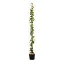 Der großblättrige Efeu ist eine immergrüne Kletterpflanze und verliert so praktisch nie seine Blätter. Eine einmal dicht gewachsene Efeuhecke bleibt das ganze Jahr über dicht und grün. Das ist vor allem sehr praktisch, wenn die Efeuhecke als Sicht- oder Windschutz eingesetzt wird. Ein weiterer Vorteil des Hedera Hibernica ist, dass er schmal wächst. Er ist so, da er wenig Platz in der Breite einnimmt, sehr gut für kleine oder schmale Gärten oder Hinterhöfe geeignet. Wird der Efeu nicht gestutzt, erscheinen im Herbst gelb-grüne Blüten und danach schwarze Beeren. Diese sind giftig für Menschen, aber bei Vögeln sehr beliebt.
