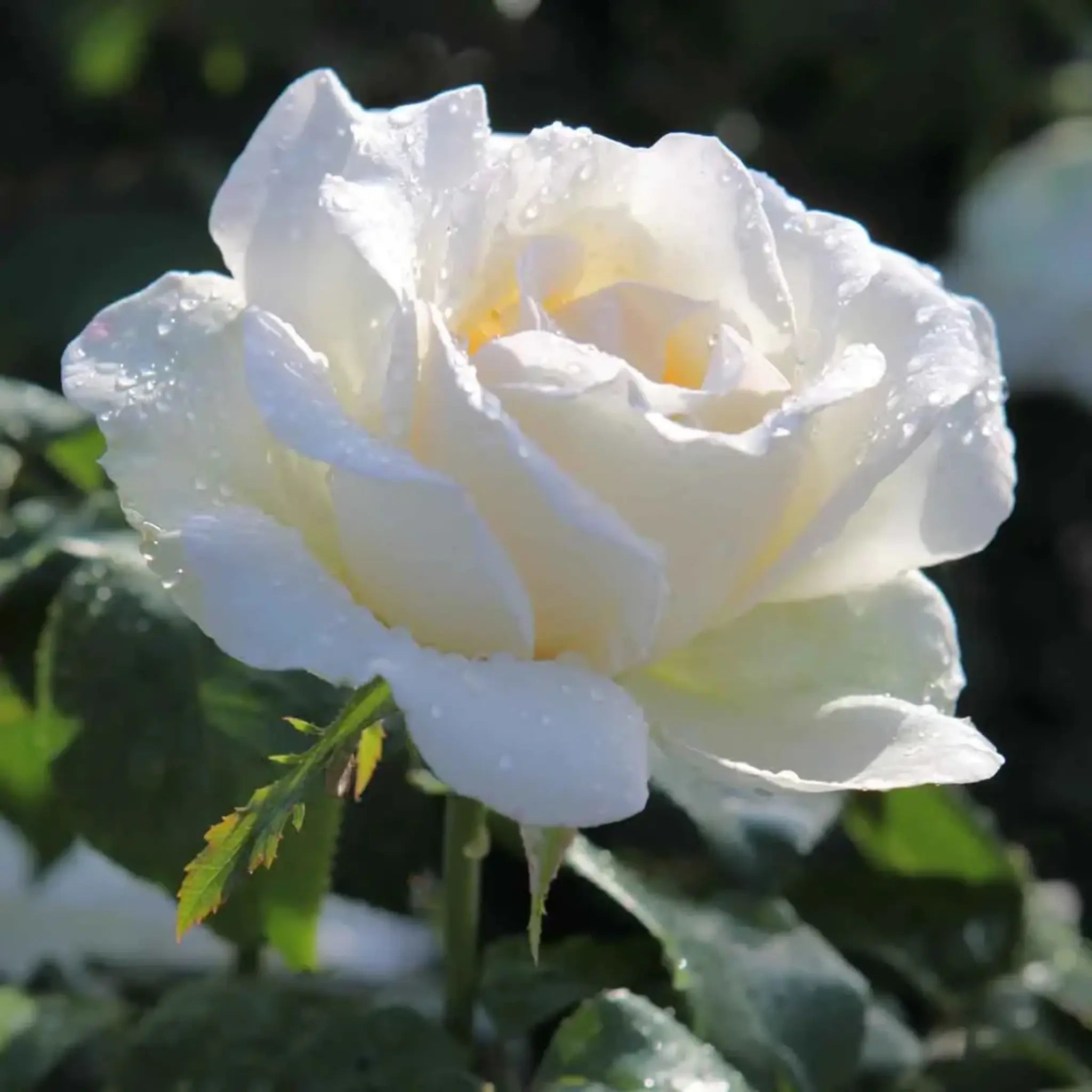 Die großblumige Rose White Symphony hat wunderschöne, elegante Blüten mit großen, schneeweißen Blütenblättern und hat eine klassische Form. Wenn Sie genau hinsehen, sehen Sie einen hellgrünen Glanz auf dem Blütenblatt, wodurch die Rose eine frische, ruhige Ausstrahlung bekommt. Die White Symphony ist eine starke Blume, die schnell wächst. Diese dezent duftende Rose wird ca. 80 cm groß, trägt viele Blätter und hat separate Blüten auf langen Stielen. Die White Symphony eignet sich für Beete und sieht auch als Schnittblume in einer Vase toll aus.