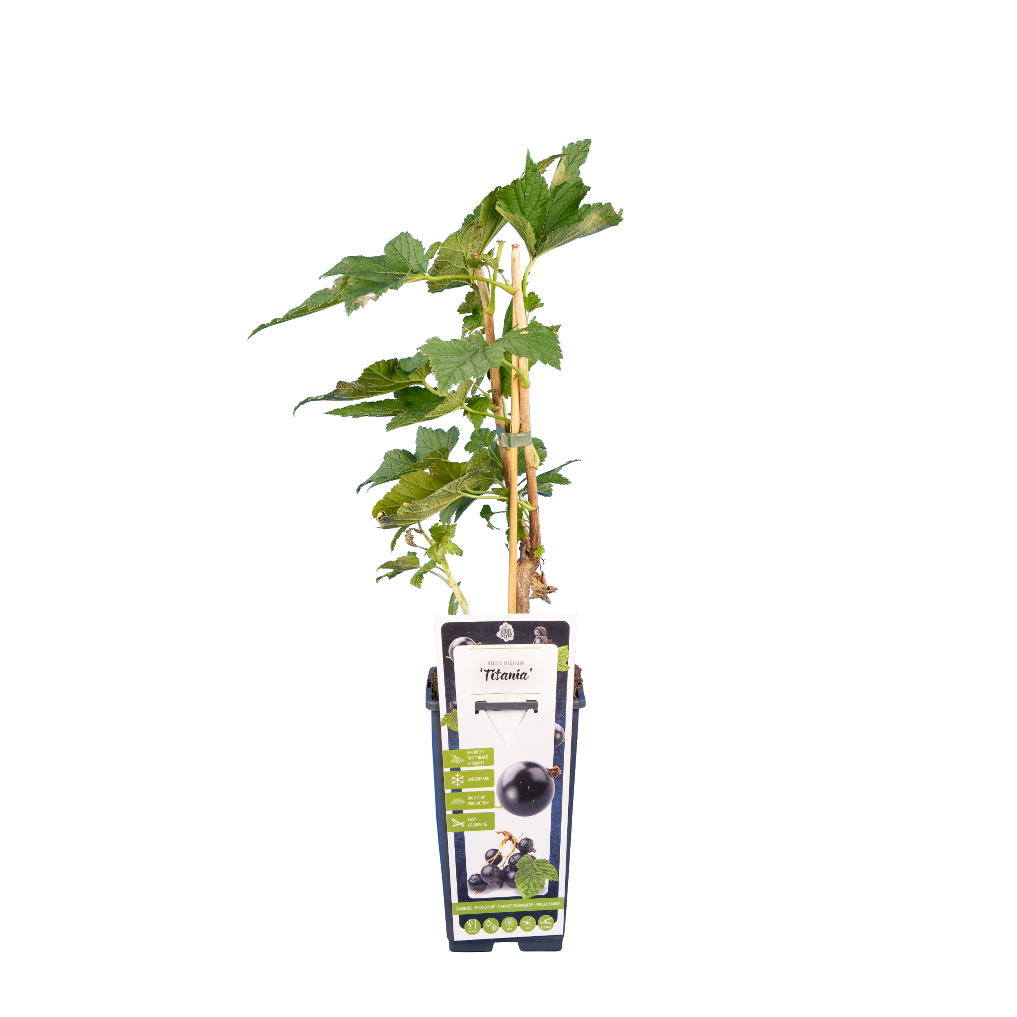 Die schwarze Johannisbeere 'Titania' (lateinisch Ribes nigrum ‘Titania’ genannt) ist eine beliebte schwarze Beere, die für ihren Cassis Geschmack bekannt ist. Die Beeren der Johannisbeere "Titania" sind fest und saftig, wachsen in Trauben und können direkt vom Strauch verzehrt, aber auch eingemacht werden.