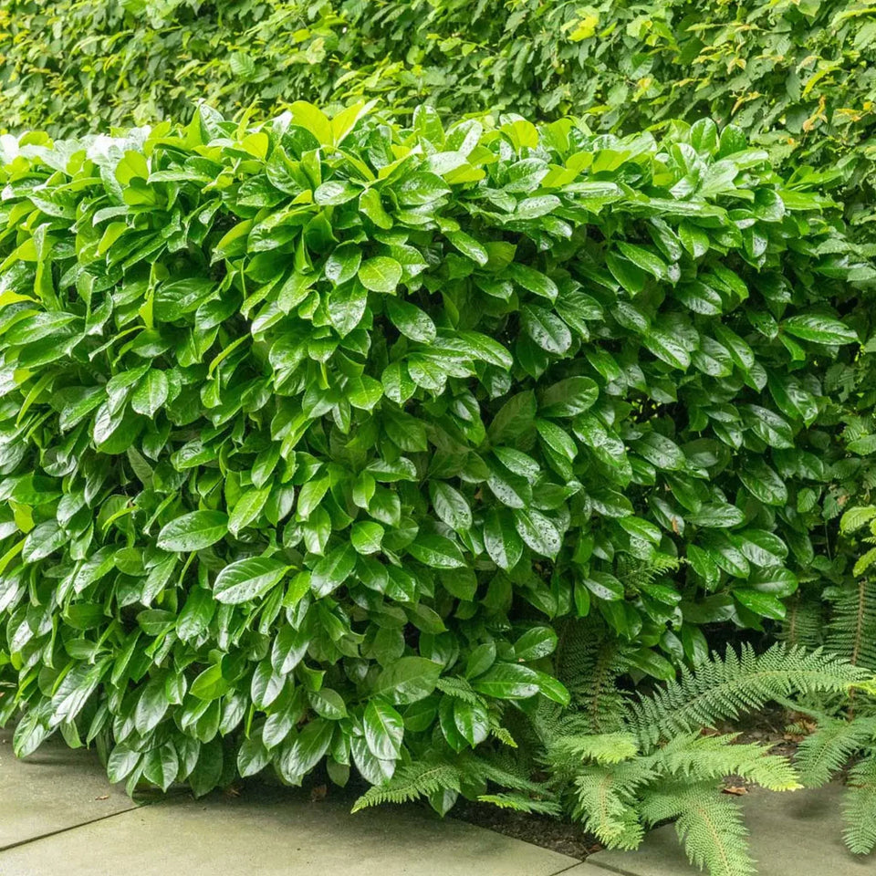 Der Kirschlorbeer Etna wächst etwa 20 bis 40 Zentimeter pro Jahr, so dass er gelegentlich beschnitten werden muss. Etwa ein- bis zweimal im Jahr, vorzugsweise im Frühjahr und im Herbst. Kein Grund zur Sorge, denn das Beschneiden dieser Laubhecke dauert nicht lange und kann eigentlich nicht schief gehen. Es gibt keine Dornen oder scharfen Blätter, an denen Sie sich kratzen könnten, und ein rigoroser Rückschnitt ist überhaupt kein Problem. Aus dem kahlen Holz wachsen einfach neue Blätter nach.