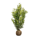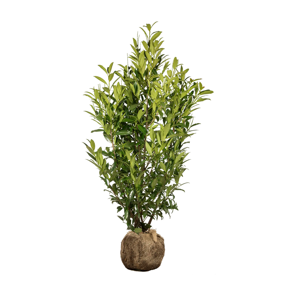 Der Kirschlorbeer Herbergii (Prunus laurocerasus herbergii) ist eine immergrüne Heckenpflanze. Die Kirschlorbeersorte wächst sehr kompakt und ist damit für volle, blickdichte Hecken sehr gut geeignet. Er ist immergrün und behält damit seine Blätter im Winter. Keine kahlen Zweige, sondern saftiges Grün, das ganze Jahr über! Der Herbergii Kirschlorbeer eignet sich für niedrige und mittelhohe Hecken, bis zu 2,5 Meter. Er hat einen schlanken, aufrechten Wuchs und wächst in eine kegelförmige Form. Außerdem zeichnet sich der Prunus Herbergii durch seine schönen Blätter aus: diese sind schmal, ledrig und dunkelgrün glänzend.