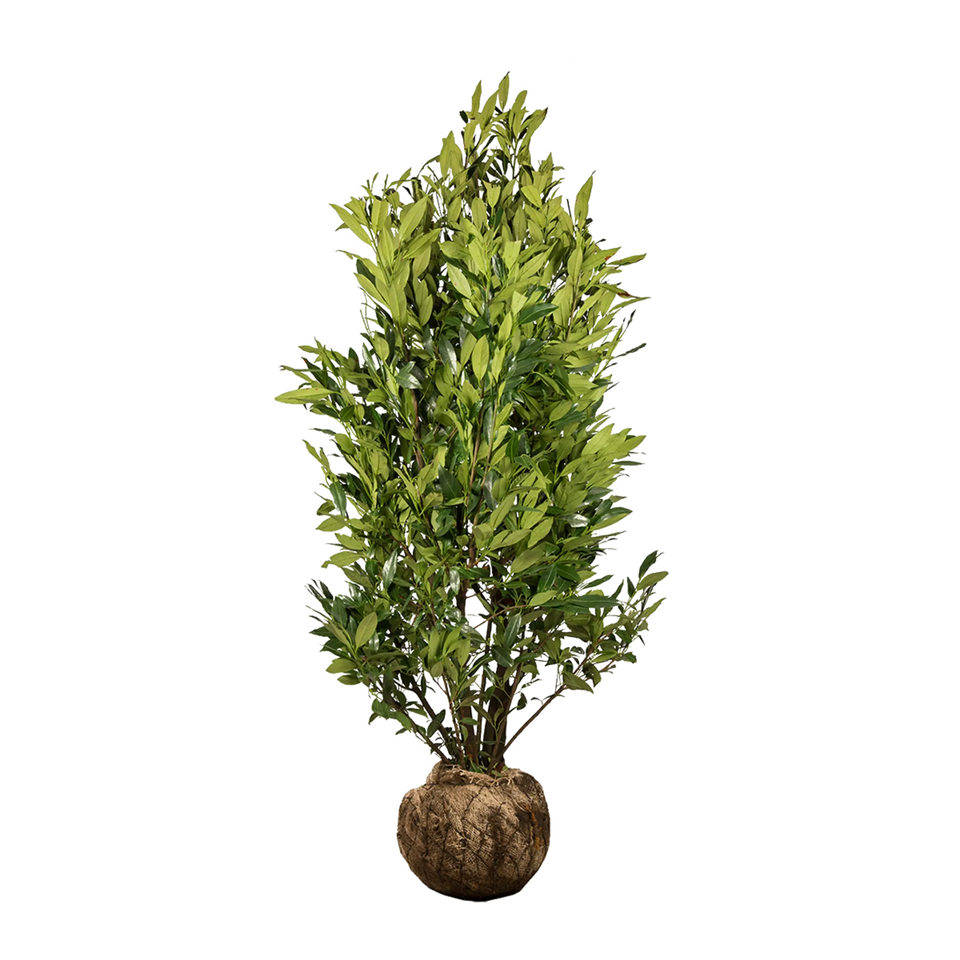 Der Kirschlorbeer Herbergii (Prunus laurocerasus herbergii) ist eine immergrüne Heckenpflanze. Die Kirschlorbeersorte wächst sehr kompakt und ist damit für volle, blickdichte Hecken sehr gut geeignet. Er ist immergrün und behält damit seine Blätter im Winter. Keine kahlen Zweige, sondern saftiges Grün, das ganze Jahr über! Der Herbergii Kirschlorbeer eignet sich für niedrige und mittelhohe Hecken, bis zu 2,5 Meter. Er hat einen schlanken, aufrechten Wuchs und wächst in eine kegelförmige Form. Außerdem zeichnet sich der Prunus Herbergii durch seine schönen Blätter aus: diese sind schmal, ledrig und dunkelgrün glänzend.