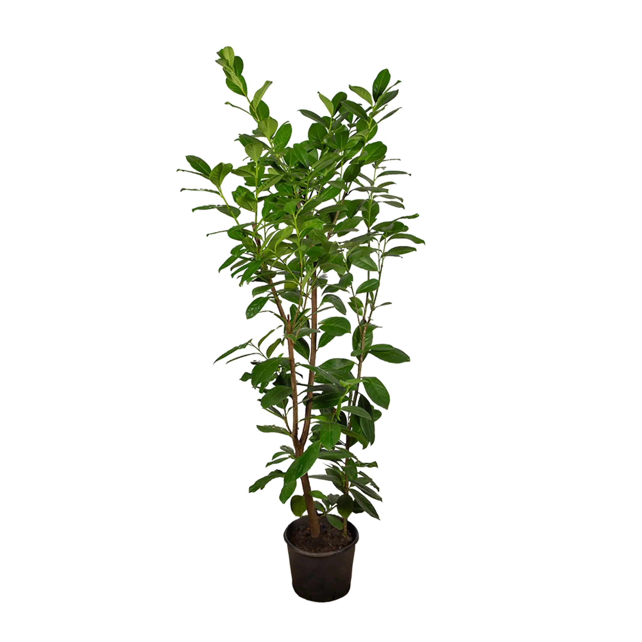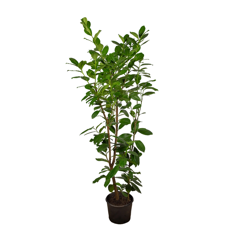 Der Kirschlorbeer Novita (Prunus laurocerasus novita) oder auch Prunus Novita genannt, ist eine beliebte Heckenpflanze mit besonderen, grün-glänzenden Blättern. Er ist sehr gut geeignet um hohe, luxuriös aussehende Hecken zu erstellen. Außerdem wächst der Kirschlorbeer Novita sehr schnell und hat ein dichtes Blätterwerk. So ist diese Sorte Kirschlorbeer sehr gut für einen hohen, blickdichten Sichtschutz geeignet. Auch kann man den Novita sehr gut als Windschutz einsetzen. Die Heckenpflanze ist außerdem robust, einfach in der Pflege und resistent gegen Pflanzenkrankheiten.