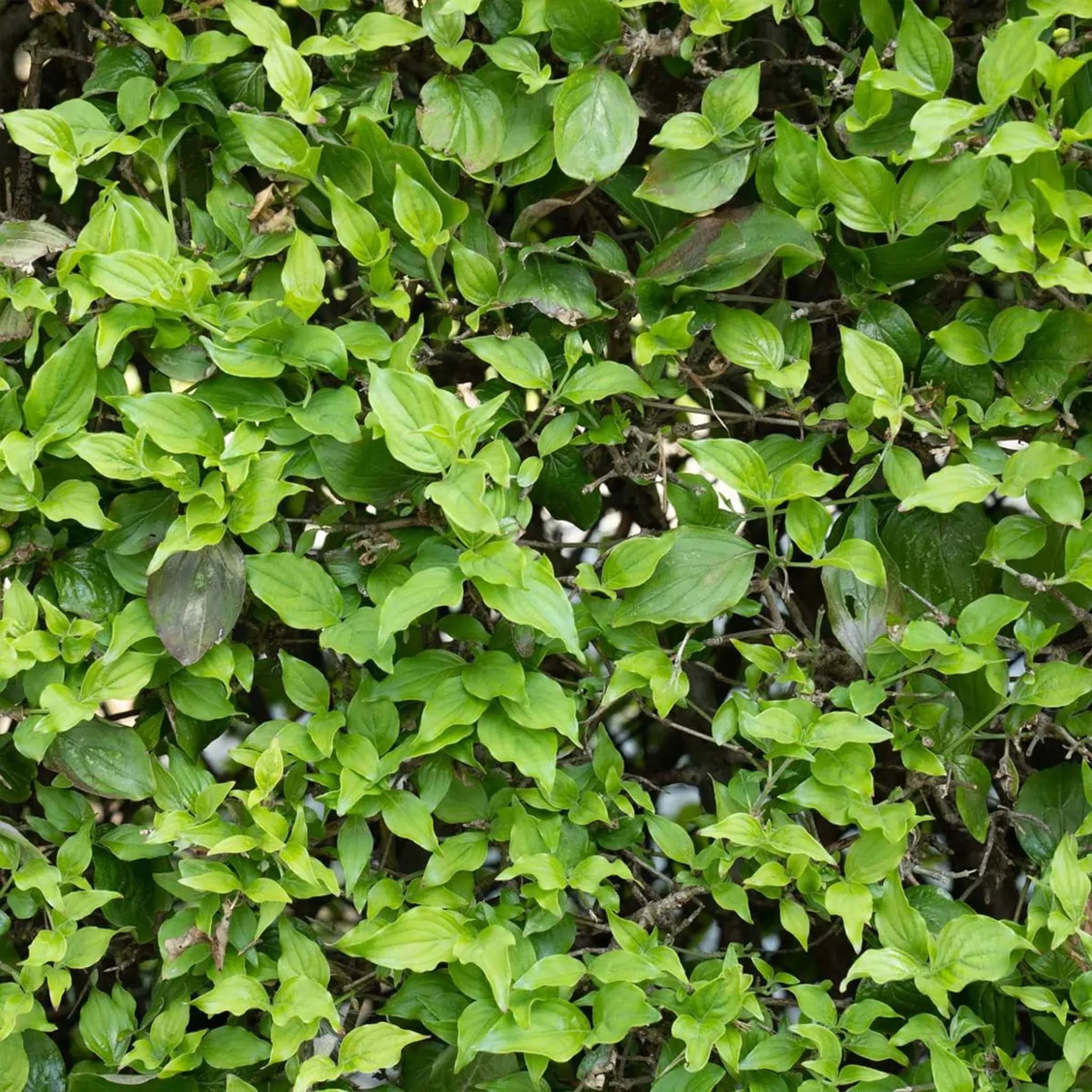 Die Kornelkirsche, bzw. Cornus mas im Lateinischen, ist ein breit wachsender Strauch, der in Mittel- und Südeuropa und Mittelasien weit verbreitet ist. Er ist also eine einheimische Heckenpflanze. Die Kornelkirsche ist ein sehr robuster Strauch, der sich ausgezeichnet für informelle Hecken bis zu einer Höhe von bis zu 5 Metern eignet. Wegen ihrer breiten Wuchsweise passt diese Sorte gut in etwas größeren Gärten. Der Cornus mas ist blattverlierend, aber die Blätter haben ein wunderschönes Gelb, Orange und im Herbst werden sie rot. Die Kornelkirsche ist winterfest, wächst prima in der Sonne und im Halbschatten und mag sowohl einen nassen als auch trockenen Boden. Also eine robuste und anspruchslose Pflanze!