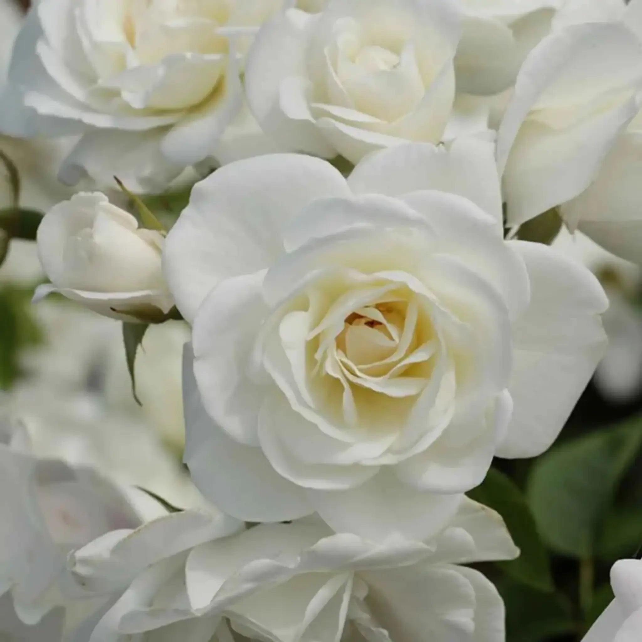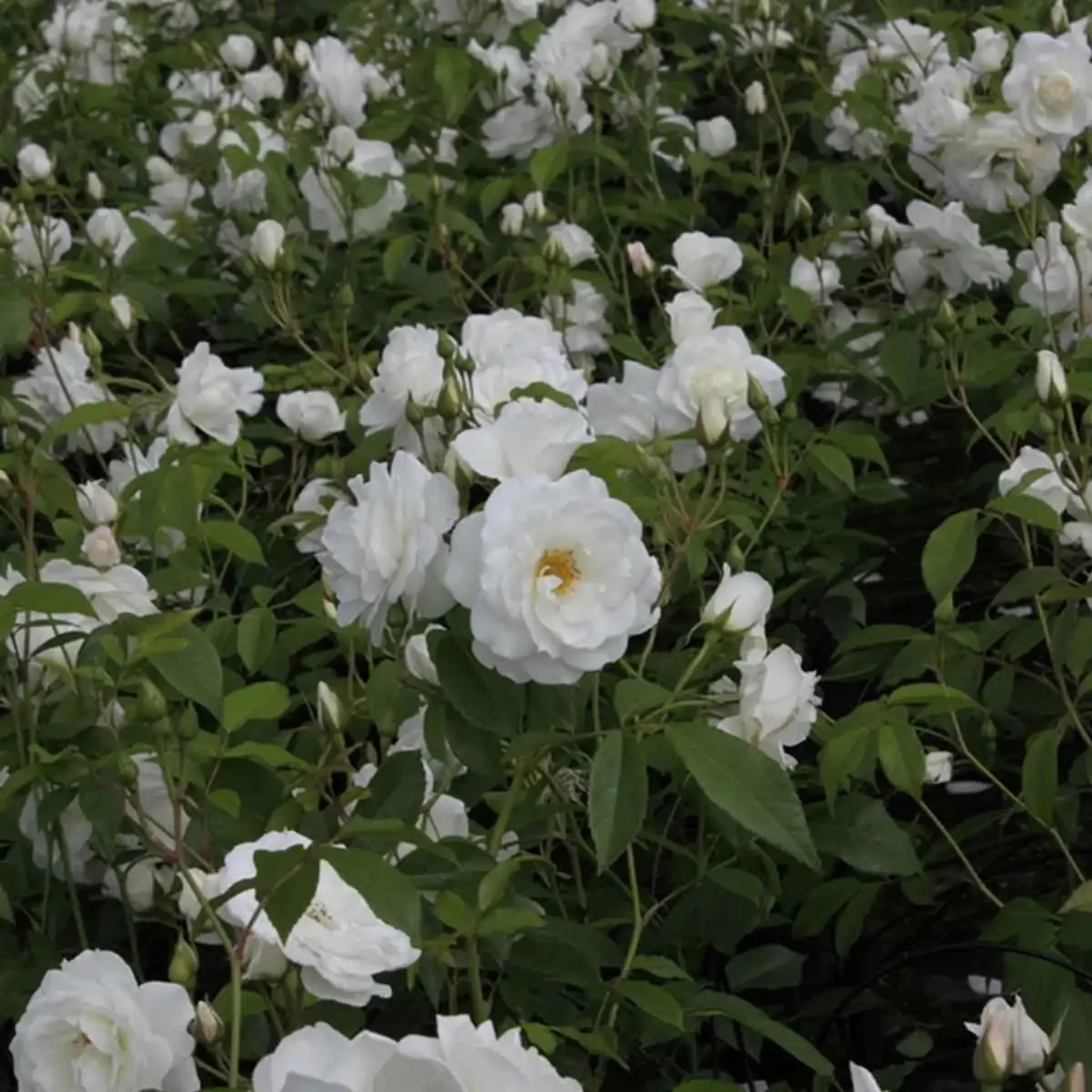 Die mittelgroßen, locker gefüllten, silber-weißen Blüten bilden Dolden und verströmen einen angenehmen Duft. Robuste Pflanze mit kräftigem, breitem und aufrechtem Wuchs. Hat nahezu keine Dornen. Reich- und ununterbrochen blühende Kletterrose! Diese Rose kann perfekt mit unseren Staudenbeet Pakete kombiniert werden.
