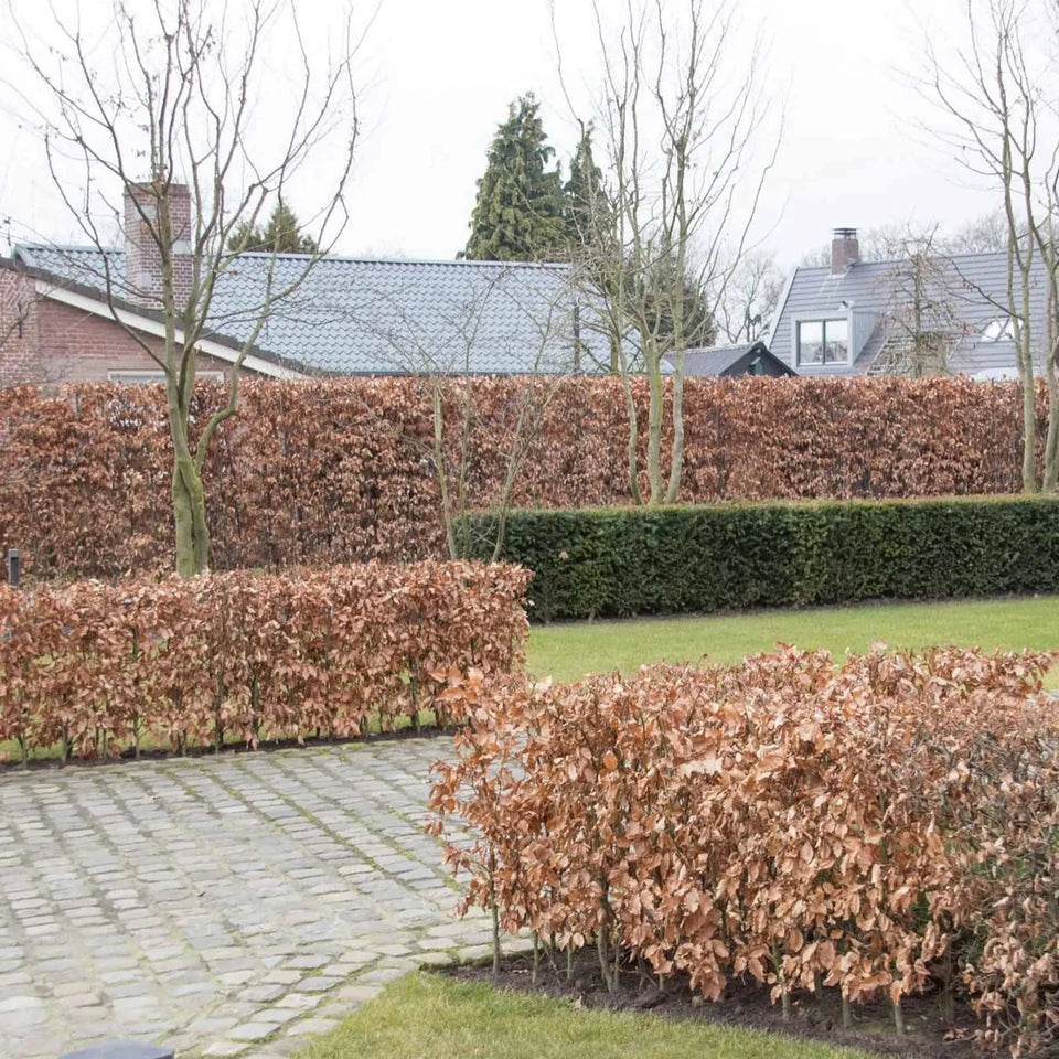 Die Rotbuchenhecke, auch die gemeine Buche genannt, kennt man auch unter der lateinischen Bezeichnung Fagus sylvaticus. Dieser Typ Hecke gehört zu den blattverlierenden Heckenpflanzen und macht sich ausgezeichnet, wenn Sie Wert auf eine besonders schöne Buchenhecke legen. Vögel und kleine Tiere finden in Buchenhecken oft einen Unterschlupf und bauen dort ihre Nester. Dadurch sorgt die Rotbuche für ein reges Treiben in Ihrem Garten. In unserem Sortiment befindet sich auch die Blutbuche mit ihren rot- grünen Blättern. Sie können sich zusätzlich für eine gemischte Buchenhecken aus beiden Sorten entscheiden.