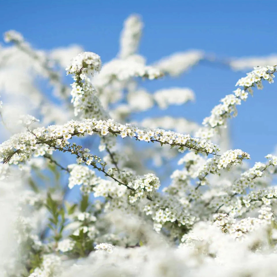 Die Spiraea cinerea 'Grefsheim' ist eine winterharte Pflanze, die sehr gut Minustemperaturen wegsteckt (bis -25°C). Diese Sorte der Spiräe Sträucher blühen in April und Mai mit weißen Blüten, die in wunderschönen langen Blütentrauben von 50 cm Länge an den Zweigen hängen. Die ovalen Blätter sind graugrün und verfärben sich im Spätjahr in den schönsten Herbstfarben. Diese Spiräe mit weißen Blüten lässt sich hervorragend mit spät blühenden Sorten kombinieren, wie die bunte Spiräe Goldflame oder die Spiräe Genpei.
