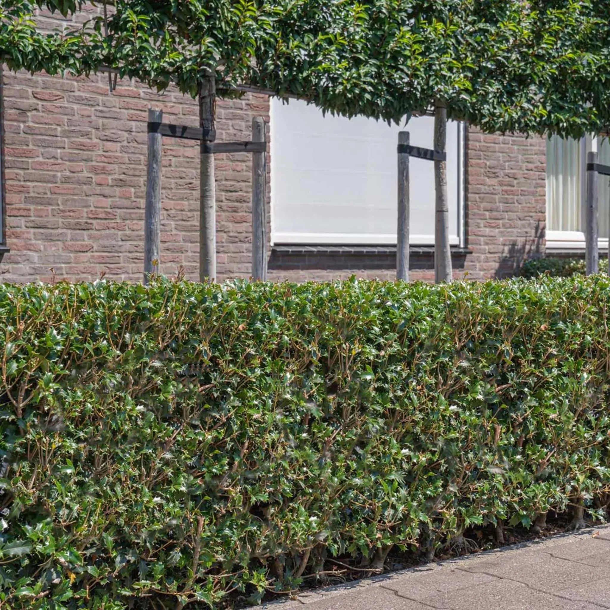 Was ist ein guter Standort für diese stachelige Heckenpflanze? Die Osmanthus heterophyllus Hecke liebt ein Plätzchen in der Sonne oder im Schatten und gedeiht am besten in einem feuchten bis trockenen Boden. Diese Sorte ist sehr empfindlich starken Wind und strengem Frost gegenüber. Aus diesem Grund sollten Sie einen geschützten Platz auswählen. Weitere Tipps zum Einpflanzen Ihrer Hecke finden Sie bei unseren Pflanzanleitungen. Die Pflanze wächst jährlich ungefähr 20 bis 30 cm und damit ist ein Rückschnitt jährlich ausreichend. Niedrige bis mittelhohe Hecken bis zu einer Höhe von 1,5 m lassen sich mit dieser Sorte sehr gut anlegen. Während des Rückschnitts der stacheligen Heckenpflanze sollten Sie unbedingt Handschuhe und Schutzkleidung tragen, damit Sie sich nicht verletzen.