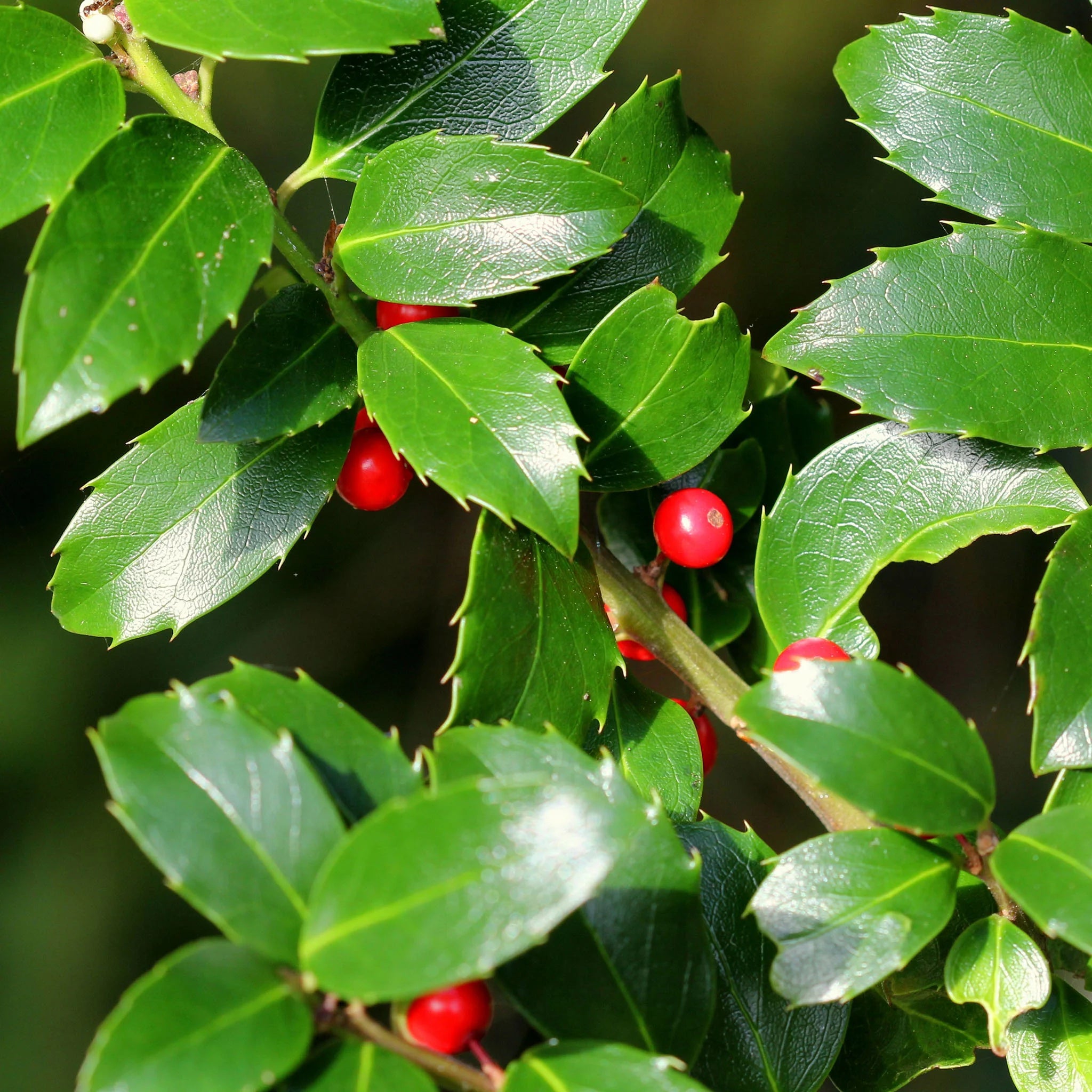 Die Ilex meserveae 'Blue Maid' ist eine weibliche Stechpalmenart, die im Spätsommer schöne, rote Beeren entwickelt. Dies steht im Gegensatz zu den männlichen Stechpalmenarten wie der Blue Prince Stechpalme und der Heckenpracht Stechpalme. Diese Beeren bleiben fast den ganzen Winter über und sorgen für einen schönen Anblick. Und während des dunklen Monats Dezember können Sie die Beeren schön in einem Weihnachtsstück verwenden. Die Beeren sind für Menschen und die meisten Tiere giftig, aber nicht für Vögel. Unsere geflügelten Freunde genießen die Früchte und eine Blaue Maid-Stechpalmenhecke mit roten Beeren im Herbst und Winter bringt Leben in Ihren Garten.