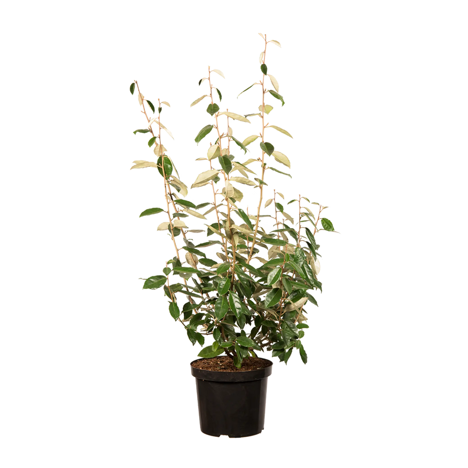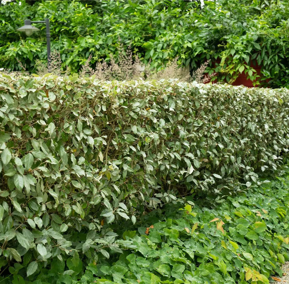 Die Wintergrüne Ölweide (lateinisch Elaeagnus Ebbingei) ist, wie der Name schon sagt, eine eine winterharte Heckenpflanze, die sich sehr gut zum Erstellen von Hecken eigent. Sie sieht aber nicht nur als Hecke hübsch aus, auch als einzelner Strauch gepflanzt hat sie einen sehr hübschen Effekt im Garten. Wird die wintergrüne Ölweiden Hecke nicht geschnitten, erscheinen im Frühling sehr hübsche weiße Blüten an der Ölweide, die durch orange-rote Beeren gefolgt werde, die silberne glänzen. Die Beeren sind genießbar und wenn die Vögel nicht alle verspeisen, kann man Marmelade aus ihnen zubereiten. Auch wenn der Name ähnelt, gehört die Ölweide nicht zu der Familie der Olivenbäume.